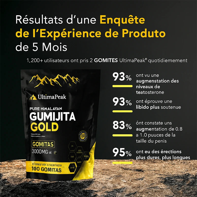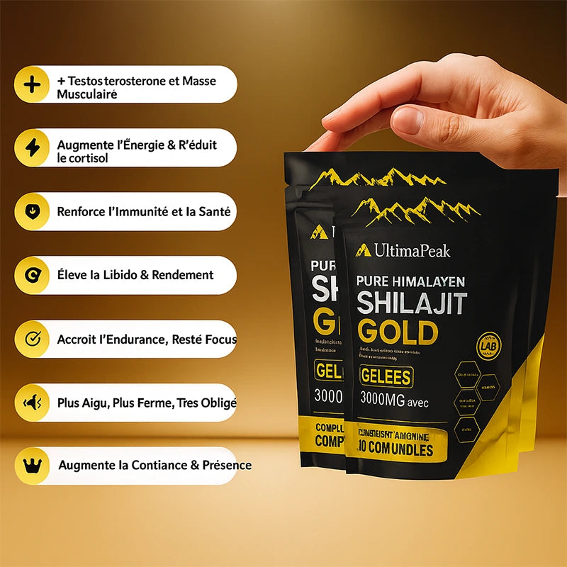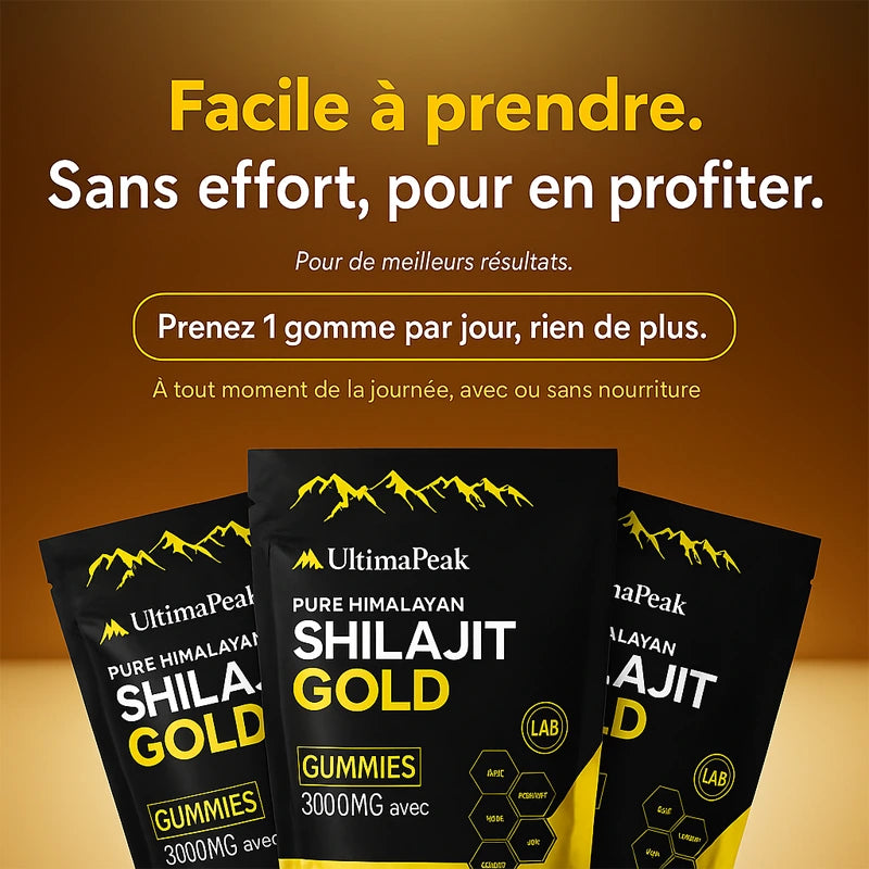 UltimaPeak™ Shilajit Gold apporte une formule concentrée à base de Shilajit pur, récolté au cœur des montagnes de l’Himalaya. Chaque gomme délivre 3000 mg d’énergie naturelle pour renforcer votre vitalité et améliorer vos performances jour après jour.